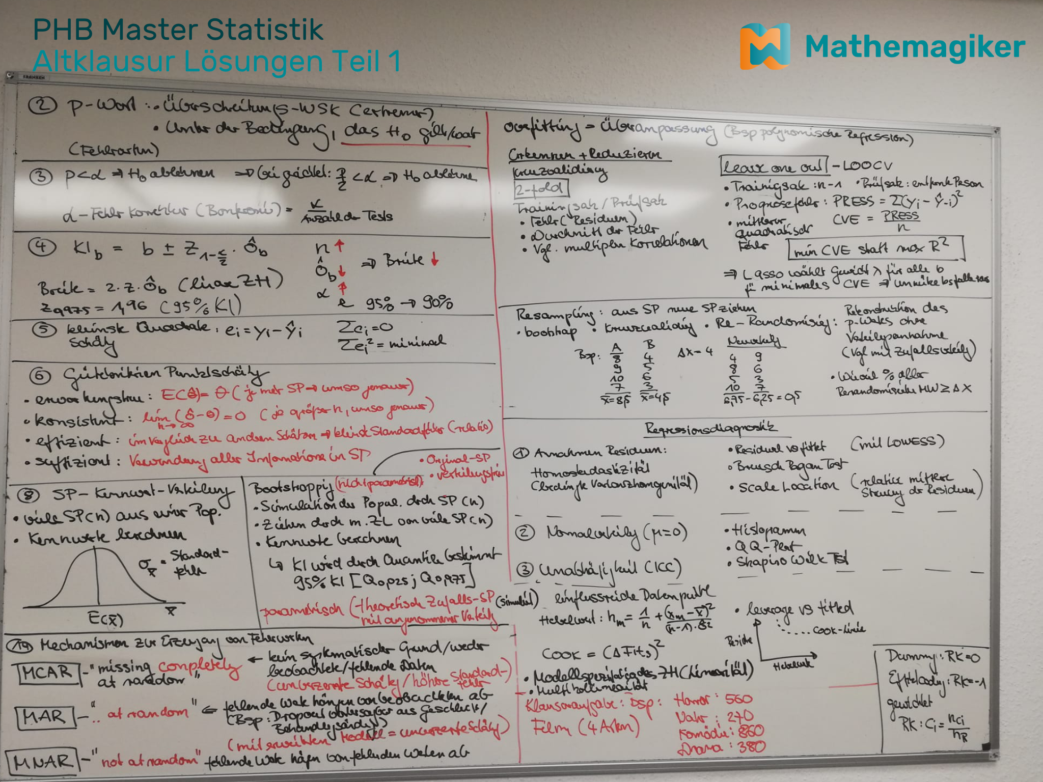 Auf einige Tests, kannst du dich gut vorbereiten, denn diese sind schnell und eindeutig erkennbar und sie haben nur wenige Varianten. Da diese Tests immer viele Punkte bringen, legen wir viel Wert darauf, dass du diese Punkte sicher bekommst. Der einfache t-Test und z-Test wird zwar selten in der Klausur gerechnet, aber diese Tests haben viele abgeleitete Aufgabentypen: das KI um den Mittelwert oder um cohens d, die Apriori-Poweranalyse, die Bestimmung des p-Wertes oder des beta-Fehlers.